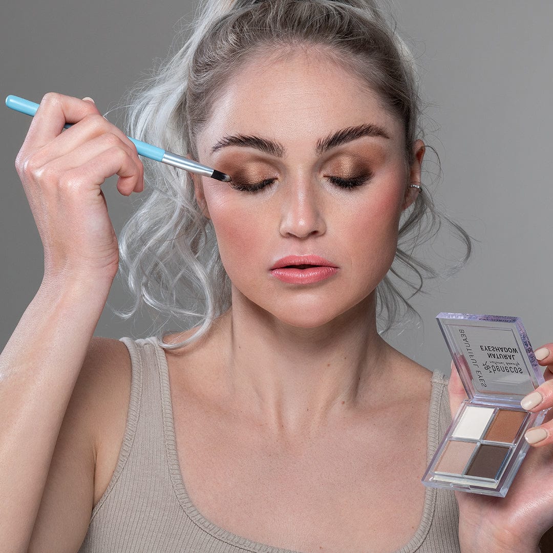 - All-over Color: Χρησιμοποιήστε την πλατιά πλευρά του πινέλου για να απλώσετε τη βασική σκιά σε όλο το κινητό βλέφαρο.