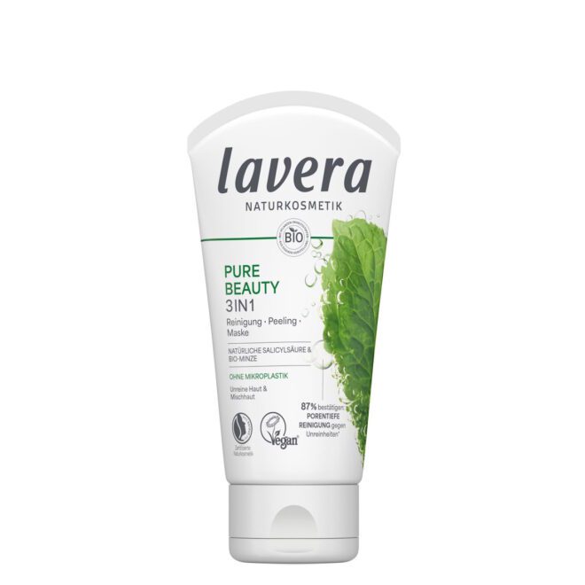 Το Pure Beauty 3σε1 Καθαρισμός, Απολέπιση, Μάσκα με φυσικό σαλικυλικό οξύ και Βιολογική Μέντα για βαθύ καθαρισμό των πόρων, χωρίς να ξηραίνει το δέρμα.