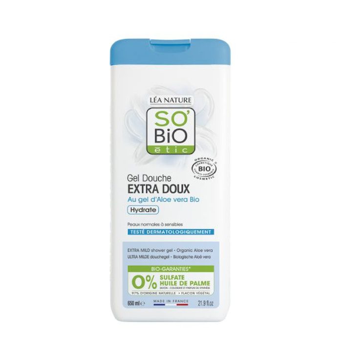 Αυτό το έξτρα ήπιο αφρόλουτρο με βιολογικό τζελ αλόης βέρα από την LEA NATURE SO BiO étic ενυδατώνει όλους τους τύπους δέρματος, ακόμα και τους πιο ευαίσθητους, χάρη στη σύνθεσή του ΧΩΡΙΣ ΘΕΙΙΚΑ ΑΛΑΤΙΑ*.