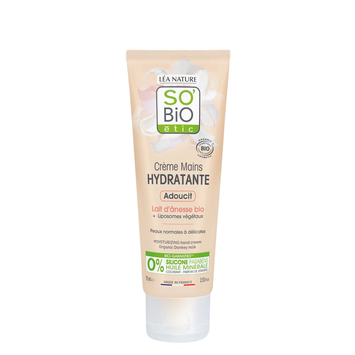 Αυτή η ενυδατική κρέμα χεριών χωρίς σιλικόνη, με βιολογικό γάλα γαϊδούρας και φυτικά λιποσώματα, μαλακώνει ακόμη και το πιο ευαίσθητο δέρμα. Αναζωογονεί και ενυδατώνει για αναζωογονητικό αποτέλεσμα και πιο ελαστικό δέρμα. Απορροφάται εύκολα (μη λιπαρή και μη κολλώδης υφή).