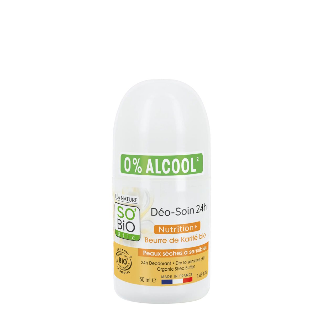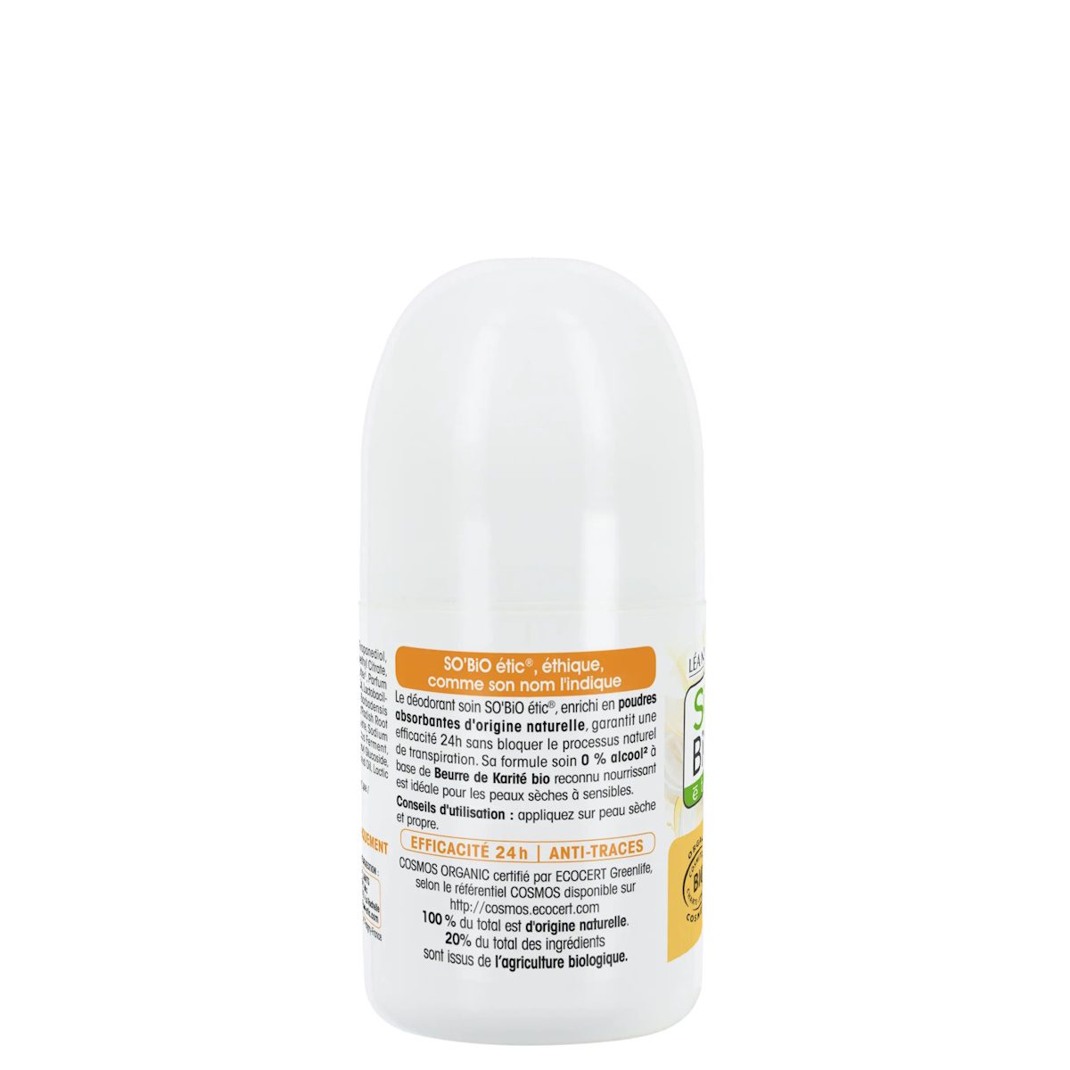 Το αποσμητικό 24ωρης αποτελεσματικότητας της SO’BiO étic, εμπλουτισμένο με απορροφητικές πούδρες φυσικής προέλευσης, εγγυάται 24ωρη αποτελεσματικότητα χωρίς να εμποδίζει τη φυσική διαδικασία εφίδρωσης. Η σύνθεσή του με 0% αλκοόλ, βασισμένη σε θρεπτικό βιολογικό βούτυρο καριτέ, είναι ιδανική για ξηρό έως ευαίσθητο δέρμα.